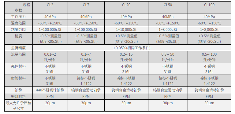 ? ? ?? 針對(duì)各種應(yīng)用,借助不同的間隙、不同的軸承類型及不同材料,CL 系列齒輪式流量計(jì)可實(shí)現(xiàn)不同介質(zhì)的測(cè)量。